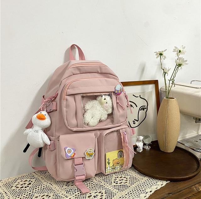Рюкзак міський спортивний корейський зі значками та іграшкою-брелоком качечка качка ведмедик тедді беар у комплекті