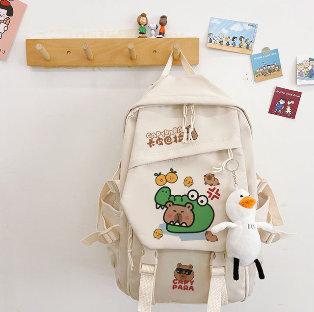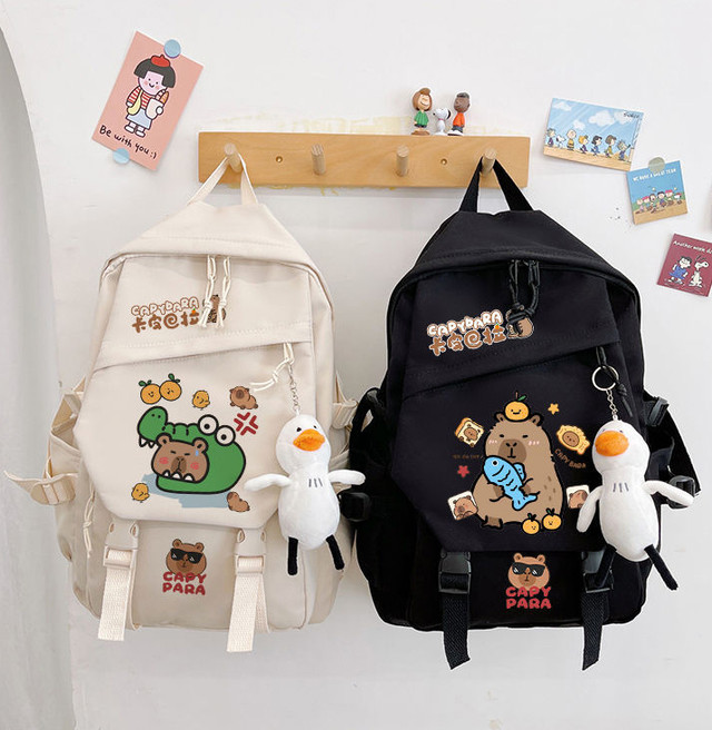 Рюкзак з принтом капібара зі значками іграшкою-брелоком міський спортивний корейський комплект із пеналом